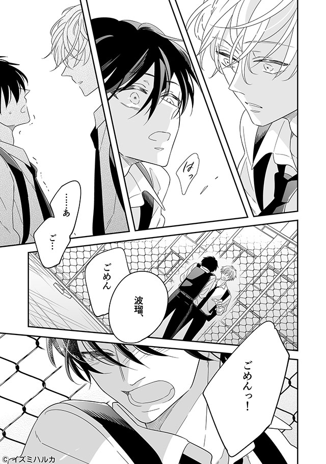 ――苦労した点、また楽しかった点など聞かせてください続き物として描き始めた初期から、ストーリー全体の構想はぼんやりありました。ですが後半に行くにつれて、キャラクターや物語への思い入れがより大きくなったために、逆に納得できる展開を描くのが難しくなった時期もありました。そのため更新に時間をおいた時間もあったのですが、最終的に自分で「これだ!」と思えるネームが切れたので良かったです。こうやって自分のペースで描けるのは創作BLのいいところだと思います。