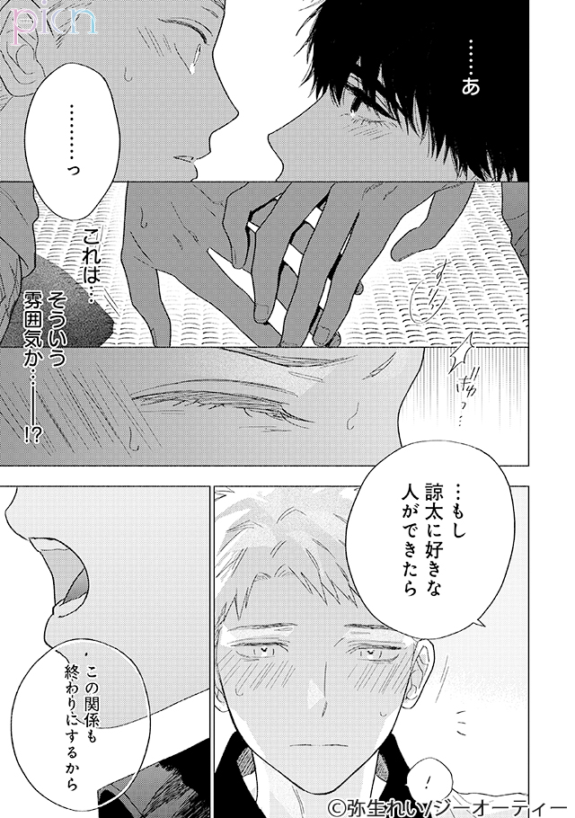 最初はキスだけだったのに、だんだんと集くんに流されて徐々にえっちな目に遭ってしまうノンケの諒太くんの姿と、優しげでありながらもじっとりとした執着が垣間見える集くんの表情変化は必見です。