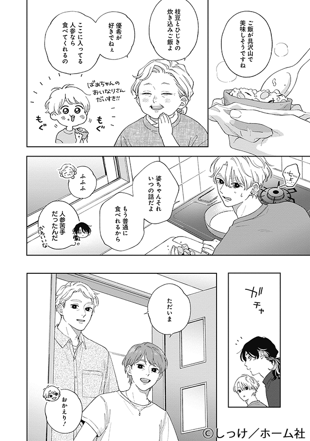 灰賀の実家では、両親と金江が上手く距離を詰められない様子を見た灰賀が、両親、金江それぞれと話すシーンがあるのですが、その時の頼もしさが本当に素晴らしくて…!