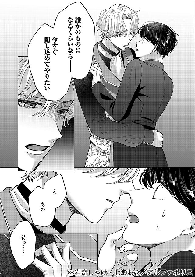 そして漫画では、岩奇しゃけ先生がコミカルさと執着の緩急を素晴らしく描いてくださっていて、原稿を拝読するたびに感激しています。