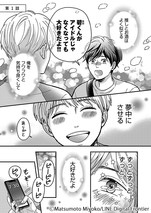 推しに憧れアイドルを目指したものの失敗し、冴えない営業マンとなった前田裕太にある日…奇跡が起きる。「湊人 碧です。よろしくお願い致します!」人気絶頂のときに引退してしまったけれど、今でも大好きな推しが! 職場にやってきた!! ビールの営業なのにビールが苦手だという碧のため、一肌脱ぐことに。元人気アイドル×推しに一途な営業マンのほろ酔いラブ