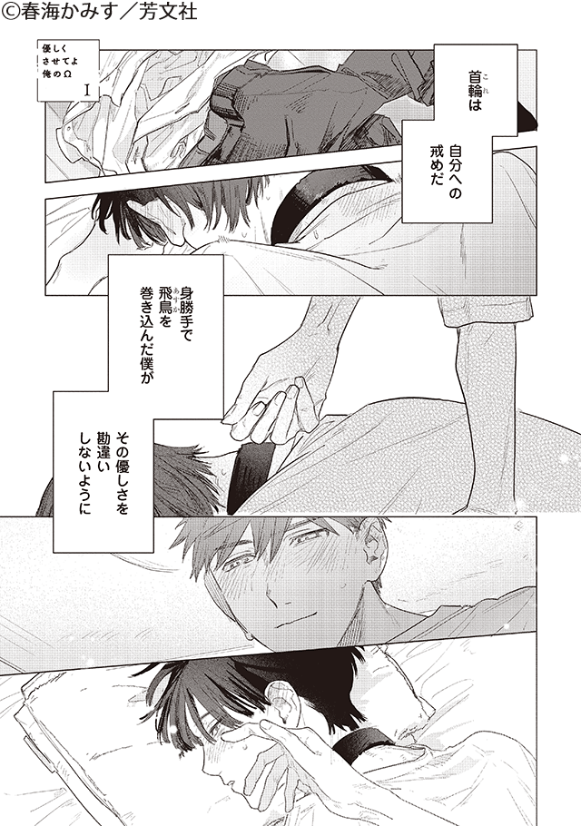 Ωの基弥は、自分の不注意によるヒートでαの飛鳥と高校生ながら番になってしまった。中学の頃からライバル視していた飛鳥に、優しくされればされるほど罪悪感をつのらせる基弥。発情期には身体を重ねつつも二人の心はすれ違うばかり。――飛鳥には、本当に好きな人と番ってほしい。だけどせめて、1年後の卒業式までは…。そんな折、基弥は番の証である噛み痕が薄れていることに気づき!?
