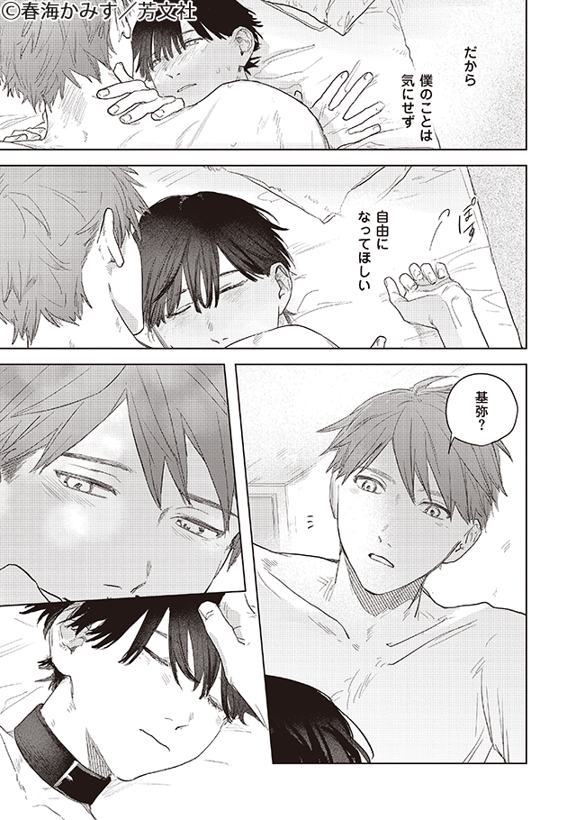 本心では大好きな彼に抱かれるヒート期の基弥は抱きしめたくなる可愛さです。