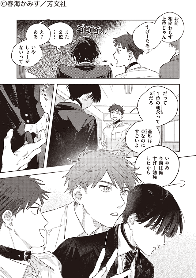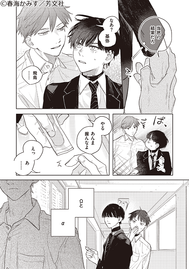 主人公の基弥が自分のΩ性を拒絶したために起こった不慮のヒートのせいで、ライバルだった飛鳥と高校生ながら番になってしまいます。