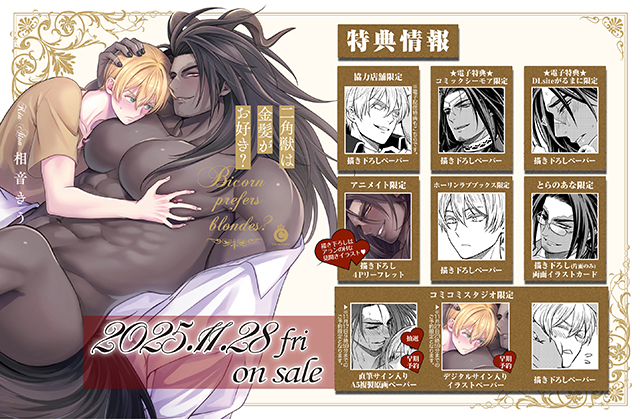 NEW!11/28 相音きう先生インタビュー ムチムチ雄っぱいに迫られて…!?金髪美青年×イケおじバイコーン♥コミックス『二角獣は金髪がお好き?』